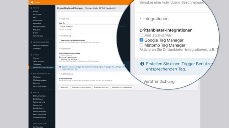Unterstützung für Google Tag Manager und Matomo Tag Manager